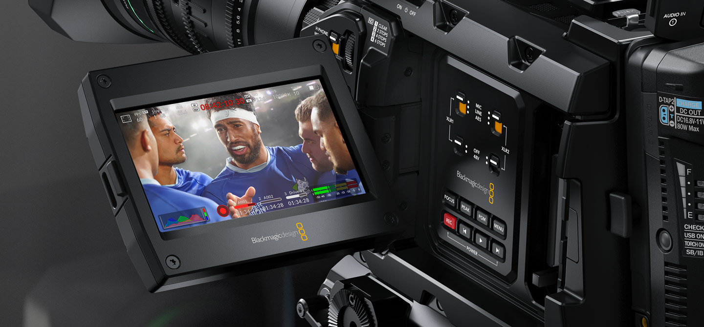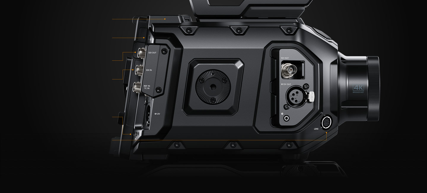 URSA Broadcast G2 features a super strong, lightweight magnesium alloy body that’s perfectly balanced and designed to be comfortable to use all day! It features familiar externally mounted switches and controls that give you direct access to the most important camera settings. The controls are laid out logically, making them easy to locate by feel, so you can adjust settings without having to look at the buttons. You also get a foldout touchscreen for monitoring, viewing camera status and changing settings using on screen menus. URSA Broadcast G2 also includes standard 12G-SDI connections, XLR audio inputs, USB-C and an industry standard 4 pin XLR broadcast 12V DC connection!