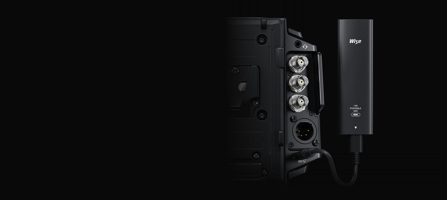 The optional Blackmagic URSA Mini Recorder lets you record files onto large 2.5 inch SSDs, as well as the latest U.2 NVMe Enterprise SSDs! SSDs such as the latest 7mm U.2 NVMe disks are super fast, delivering data transfer speeds of up to 900 MB/s! This blazing fast performance allows you longer recording times for full resolution 4K and 6K 12-bit Blackmagic RAW files in the highest quality Q0 encoding. The unique design of the Blackmagic URSA Mini Recorder means it attaches directly to the back of your URSA Broadcast G2 between the camera and the battery. It’s controlled via the USB-C so you don’t have to worry about manually starting or stopping the SSD recorder.