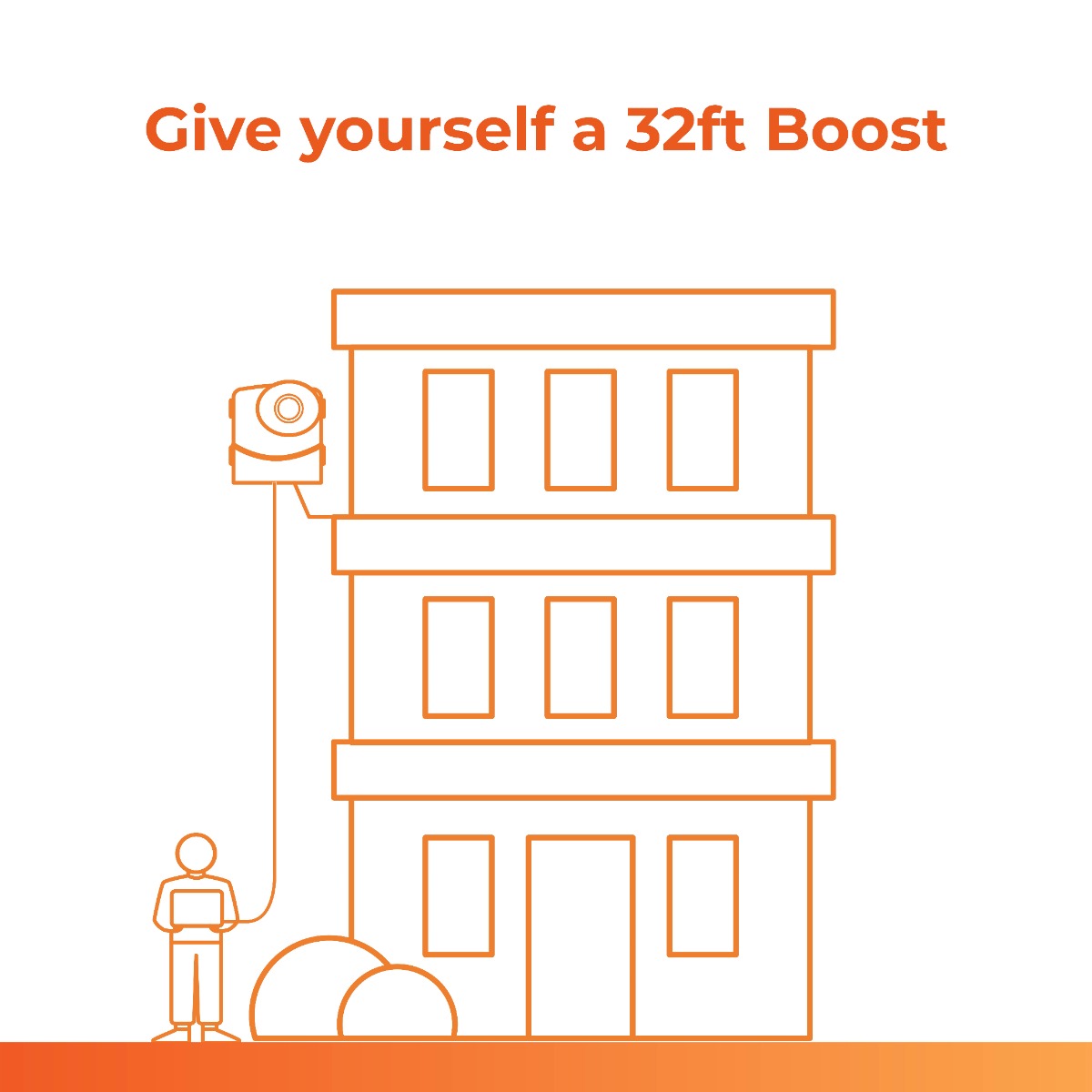 Connect to your camera from the ground using the 32ft (10m) durable and construction-proof cable. Our cable has UV coating and special waterproofing plug and seal to ensure safe long-term outdoor use.