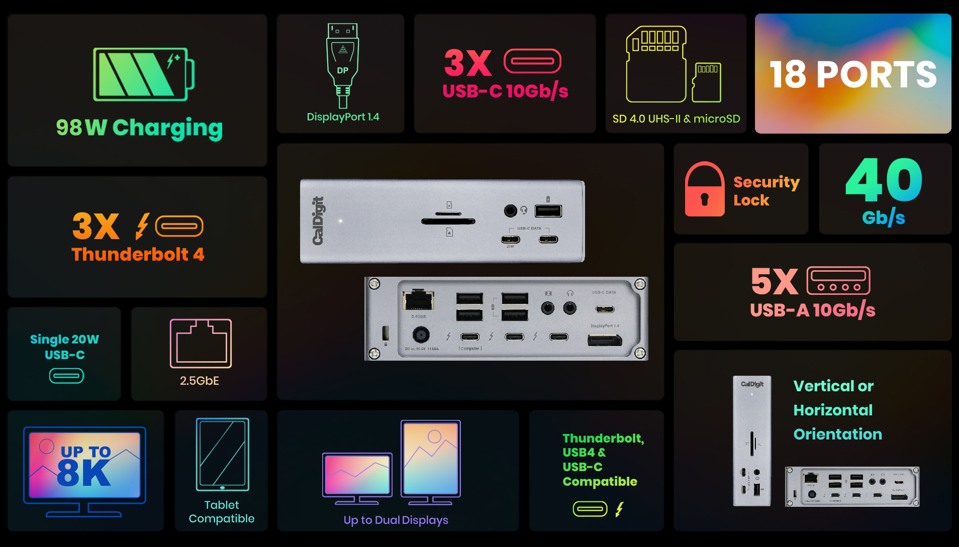 The TS4 offers a staggering 18 ports of connectivity, the most featured on any Thunderbolt dock ever.