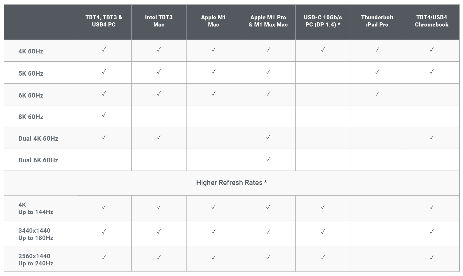 Windows PC Thunderbolt 3 and Thunderbolt 4 users can connect up to dual displays.
