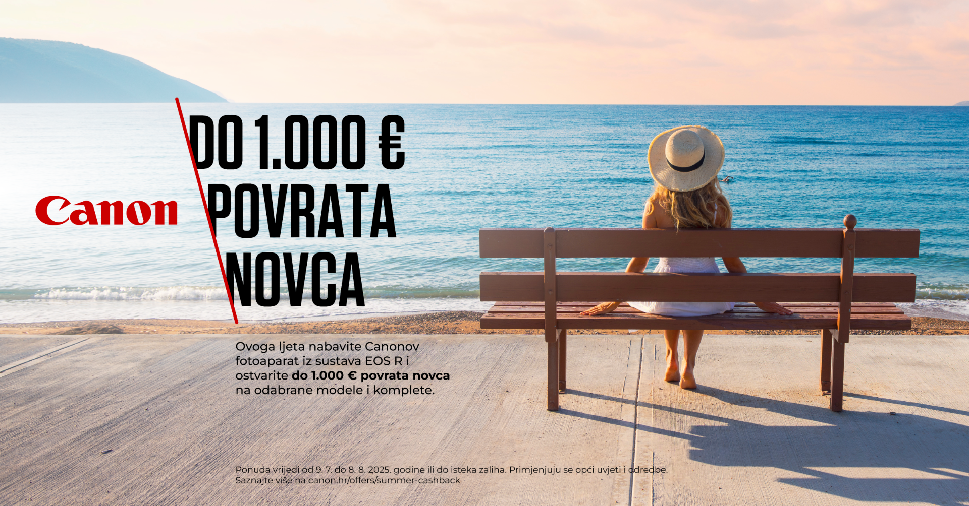 Kupite Canon fotoaparat te nakon kupnje ostvarite djelomični povrat novca. Iznosi povrata navedeni su niže u tablici te ovise o tipu proizvoda, a maksimalni iznos je 1000 EUR. Ponuda traje od 9. 7. do 8. 8. 2025. ili do isteka zaliha. Zahtjev za povrat novca moguće je podnijeti u razdoblju od 9. 7. do 22. 8. 2025.
