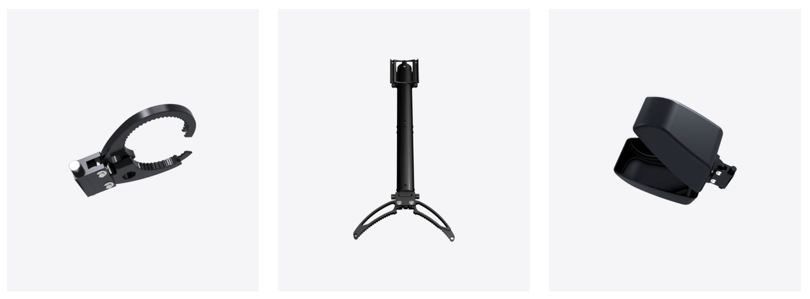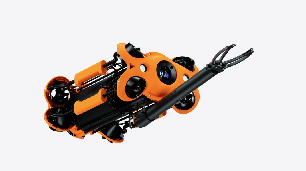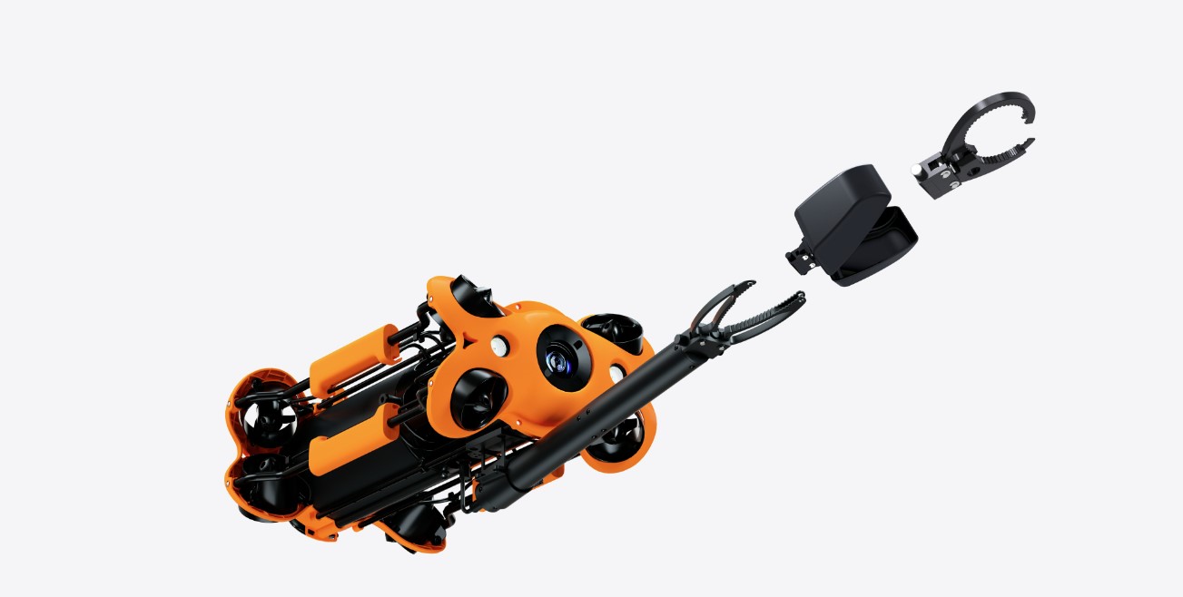 CHASING Grabber Arm 2 with a standard two-jaw clamp is a replaceable robotic arm developed for CHASING underwater drones. It supports quick replacement of sediment sampler, circular claw, and other tool heads.