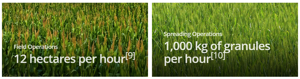 [10] Data was measured with urea and may vary by granule type, operating environment, and parameters. Spreading parameters for this test: Dosage of 150 kg/ha, spreading width of 8 m, flight speed of 10 m/s, height of 4 m, and spinning disk speed of 1,000 r/min.