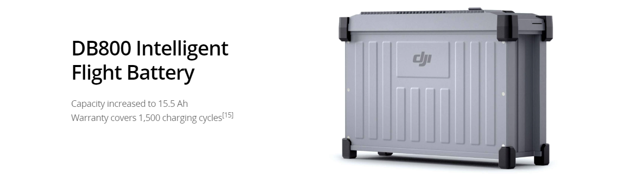 | Charging Time[11] | Fully charges a battery in 9 to 12 minutes (DB800 Intelligent Flight Battery) |