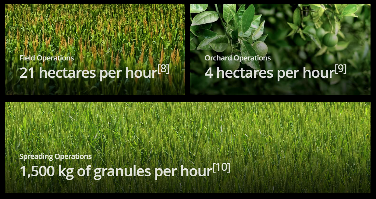 | Effective Spray Width [2] | 4-11 m (at a height of 3 m above the crops) |