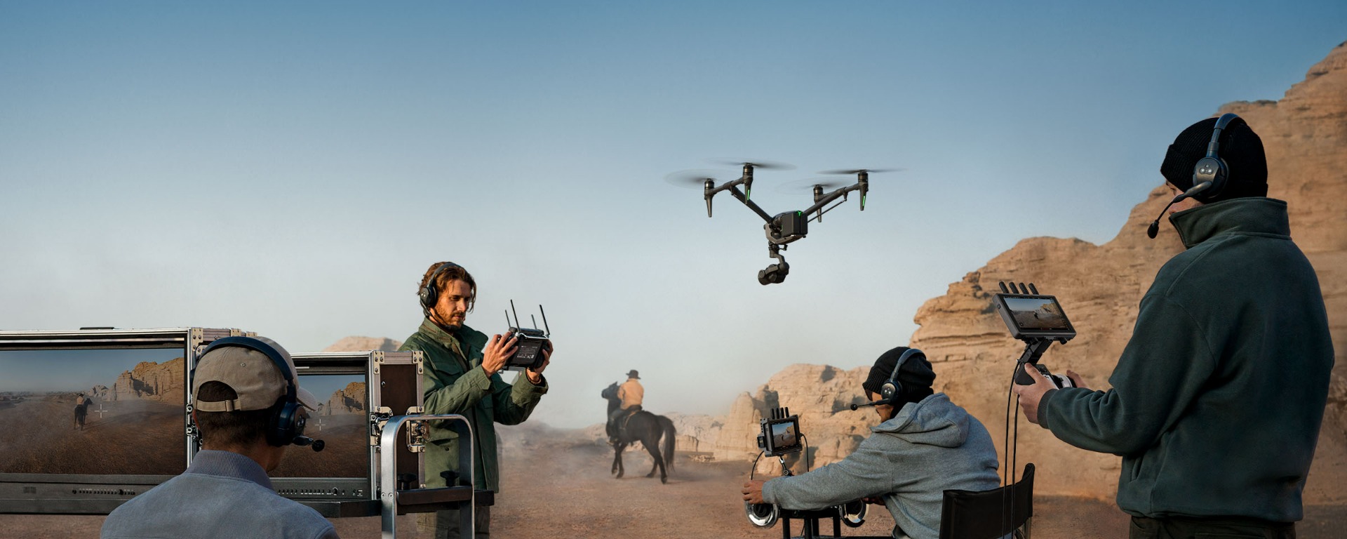 Inspire 3 supports the DJI High-Bright Remote Monitor, DJI Master Wheels, and DJI Three-Channel Follow Focus, increasing coordination efficiency.