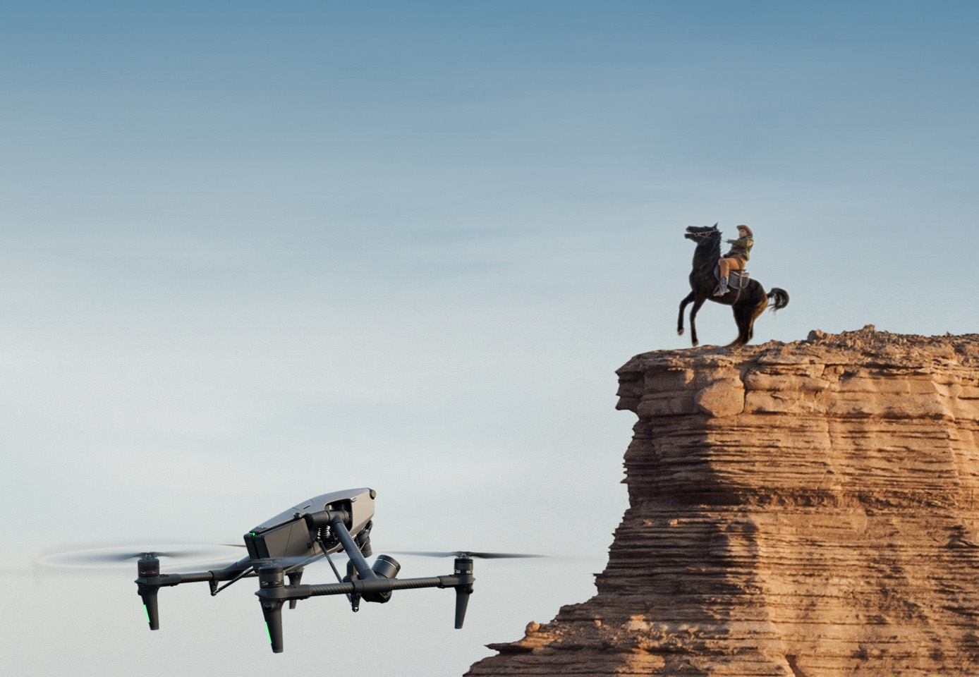 Inspire 3 features 360° Pan and Tilt Boost configurations. Tilt Boost allows for obstruction-free 80° upward-angle shooting.