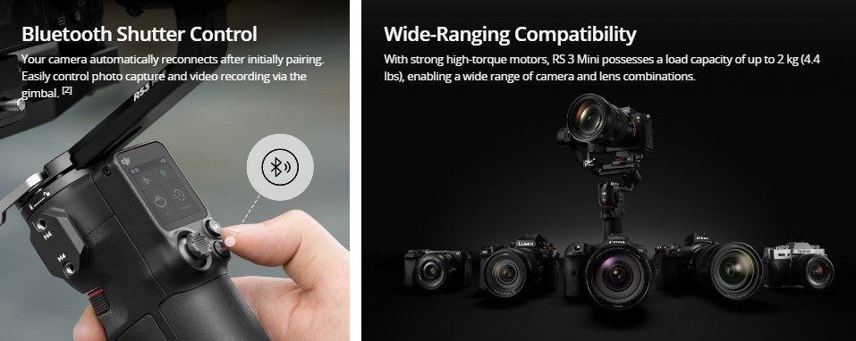 Access wireless control for select cameras using Bluetooth and the Ronin app.