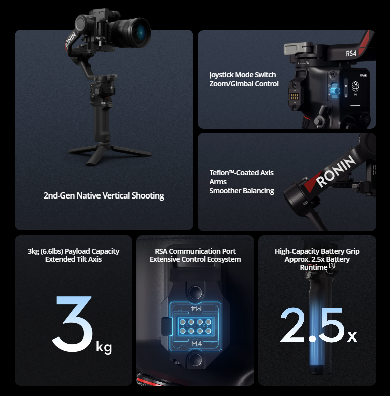by DJIThe DJI RS 4 lightweight commercial stabilizer supports next-generation native vertical shooting with enhanced operation efficiency, improved stabilization performance, and an upgraded accessory ecosystem.