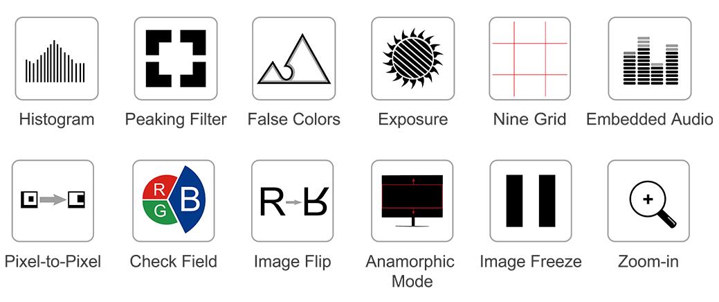 The FW279S has extensive monitoring tools, including histogram, focus assist, embedded audio, false colors, zebra exposure, ratio marker, anamorphic mode, zoom etc. It could help you create the wonderful shots.