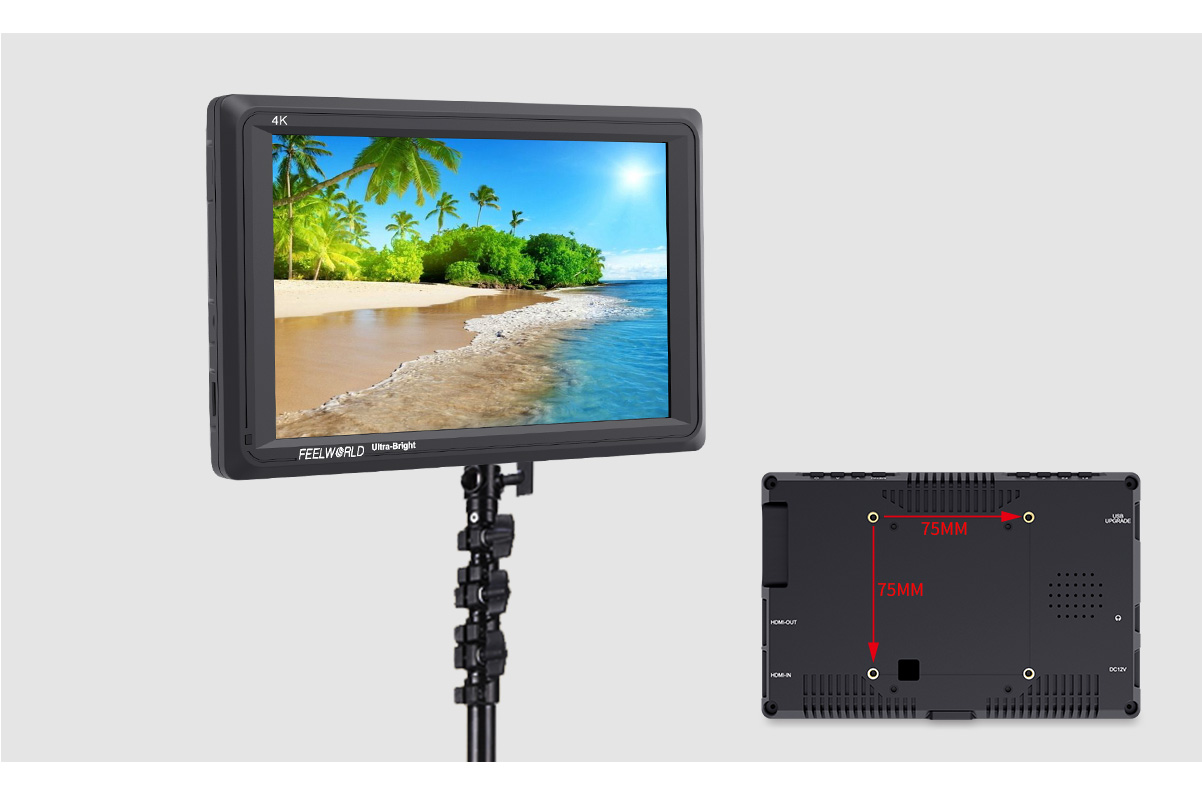 FEELWORLD FW279S ultra-high brightness monitor uses the "golden size" 7-inch panel. The FW279S monitor not only has the resolution and pixel density to make every shot look amazing, the high bright 2200nit screen at almost 5 times the brightness of conventional field monitors lets you shoot outdoors without reflections washing out your image. This makes it a great choice for gimbals, Steadicam and director's monitors, delivering a crisp image without the bulk and viewing angle restrictions of a sun hood.
