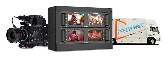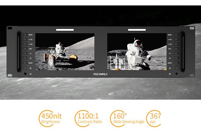 FEELWORLD D71 PLUS monitors are the ideal choice for 3G-SDI or 4K HDMI monitoring anywhere you need it. It has 2 independent 7 inch displays can be monitor two different cameras simultaneously, it easy to install in video wall or broadcast truck thanks to its 3RU form factor. You can use them for broadcast, post production, on set monitoring, flyaway kits, broadcast trucks and more.