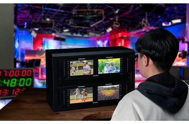 In mobile broadcast truck, you need every inch of space and you need minimal heat so you need a monitoring solution that is lightweight and compact, the D71 PLUS is the ideal solution. Imagine having all your video sources displayed on 7 inch LCD screens so you can see camera detail and quality.