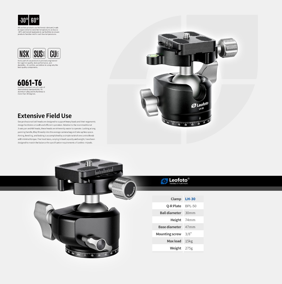 - Leofoto Athena LA-284C+LH-30 Carbon Fiber Tripod