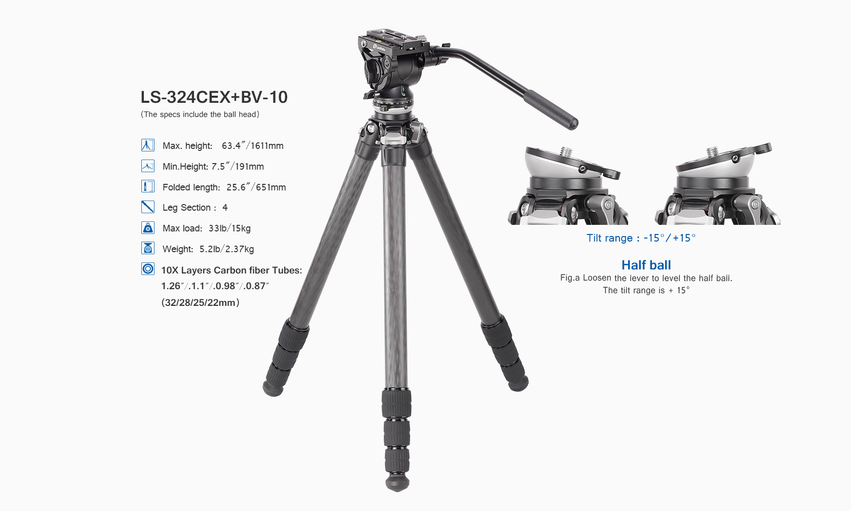 - Leofoto Ranger Leveling LS-324CEX+BV-10 Carbon Fiber Tripod