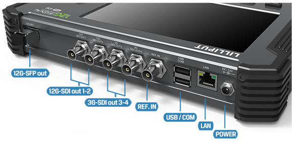 12G-SFP OUT: Support 12G-SDI fiber signals (Optional Module).