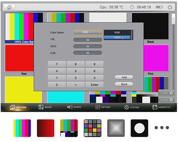 Picture: Built-in plenty of preset patterns, and user-definable pictures imported to the generator to meet various test requirements.