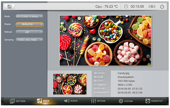 Mode Options: Selection among of 12G-SDI/6G-SDI/3G-SDI/HD-SDI/SD-SDI signal formats.