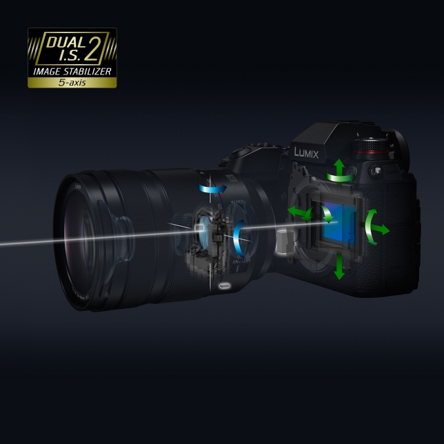 Kombiniranjem 5-osovinskog stabilizatora Body I.S. u fotoaparatu i optičkog stabilizatora slike (O.I.S., 2-osovinskog) u objektivu fotoaparata serije LUMIX S,* 5-osovinski stabilizator Dual I.S. 2 snažno kompenzira zamućenost omogućavanjem upotrebe sporije blende od 7 zaustavljanja. ** Zapanjujuća snaga 5-osovinskog stabilizatora Body I.S. sa snagom kompenzacije od 5,5 zaustavljanja*** ispravlja drhtanje sa svim objektivima, uključujući i one koji nemaju O.I.S. * 5-osovinski stabilizator Dual I.S.2 može se koristiti s objektivima S-R24105, S-E70200, S-R70200 i S-R70300 od 18. veljače 2021. ** Na temelju CIPA standarda (kut/nagib skretanja: udaljenost za fokusiranje f = 200 mm ako se koristi S-E70200). *** Na temelju standarda CIPA (kut/nagib skretanja: udaljenost za fokusiranje f = 50 mm ako se koristi S-X50).
