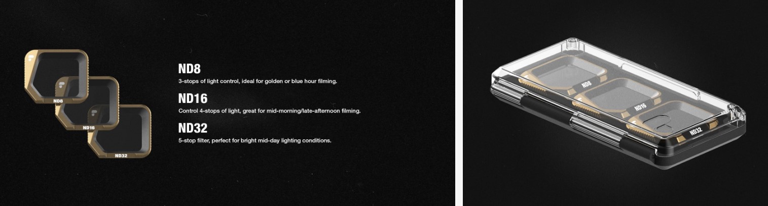 - Includes ND8, ND16, ND32 filters + magnetic hard case.