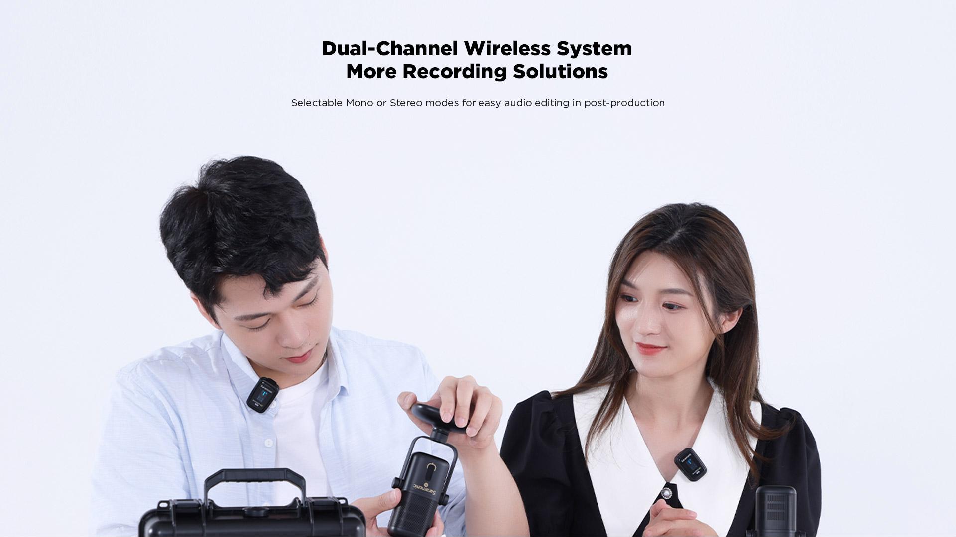 Ultracompact 2.4GHz Dual-Channel Wireless Microphone System.