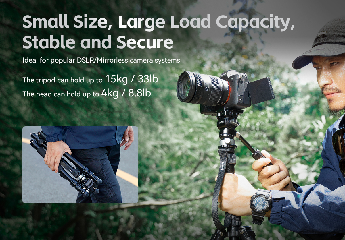 by SmallRigWith a 33 lb base load capacity at a weight of only 4 lb, the FreeBlazer CT190 Aluminum Video Tripod from SmallRig is a durable and portable support option for professional photographers, videographers, and vloggers. It is constructed with durable, lightweight aluminum and reaches a maximum height of 72.4" with its column extended, folding down to 17.7" in length for simplified transport in the included carrying bag.