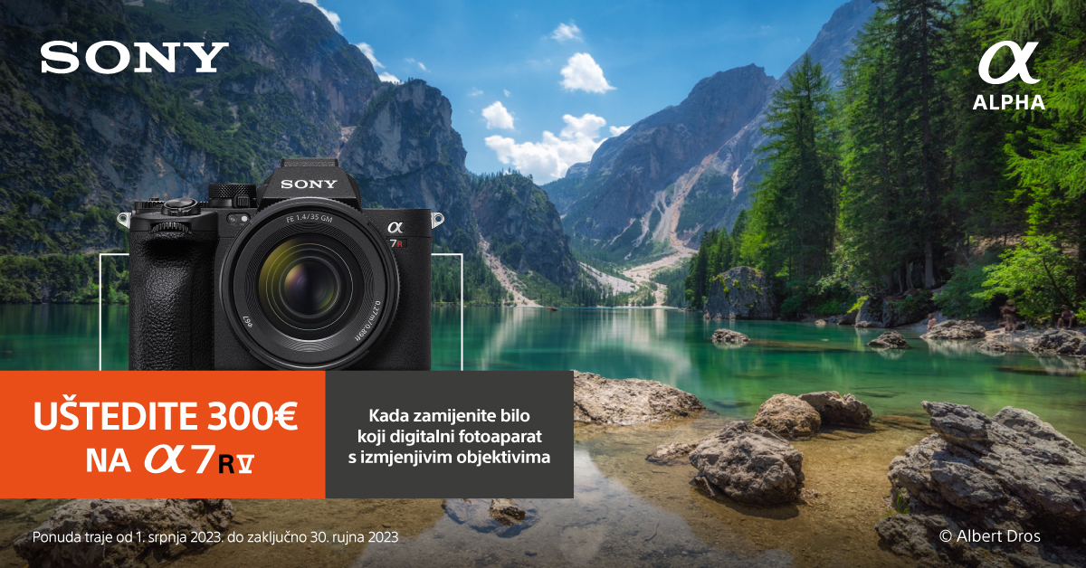 Donesite bilo koji stari digitalni aparat s izmjenjevim objektivom te ostvarite dodatnih 300EUR (2260,35kn) popusta prilikom kupnje novog Sony Alpha a7R V fotoaparata!