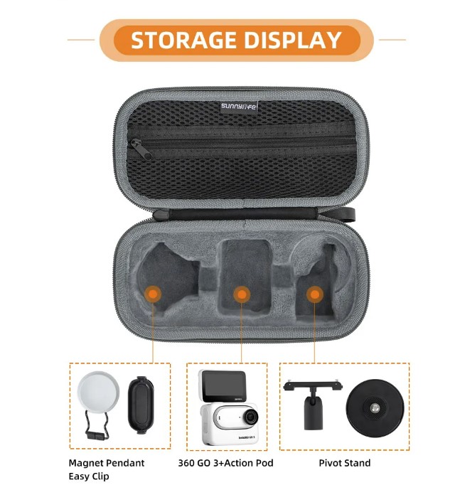 - Sunnylife Insta360 GO 3 Combo Storage Bag with nesh pocket