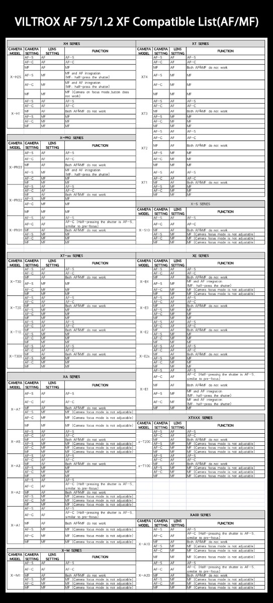 - Viltorx AF 75mm F/1.2 XF-MOUNT lens